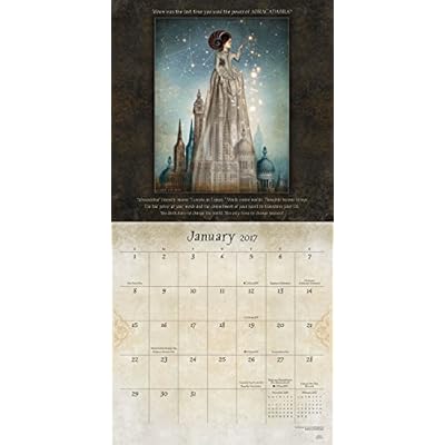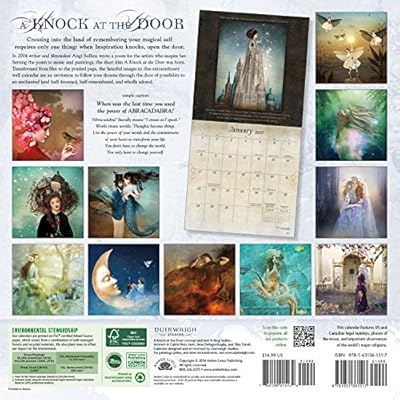 This is so pretty. Since my calendar has a prominent place in my kitchen and I see it all of the time, I wanted something unusual! It has a nice, mystical fairy-tale, fantasy kind of vibe about it and would make a great gift. Per the liner notes, the art work is from a 2004 short film entitled " A Knock At The Door", based on a poem written by Angi Sullins. Written for the artists who inspire her, the poem was translated into paintings and music, then made into film, and finally translated into print. What an amazing journey!The colors are lovely and the artwork is beautiful.
